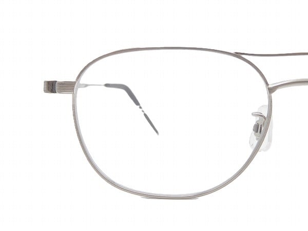 しっかりとした体積を持つブリッジとチタン製トップバーの2ブリッジにより軽量かつ形崩れしにくい設計。傷を目立たせない極細のヘアラインを配したフロントリムは2.5㎜厚の奥行きがあり、適正な強度と度付きレンズの厚みを考慮した。 掛け心地が良く、軽くて壊れにくいという理想的なプロダクトを追求した。