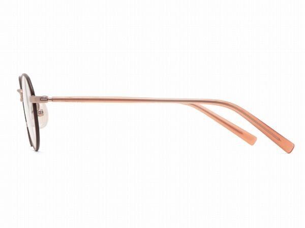 リム全体をマットな七宝で覆っていて少しだけ目尻を上げた多角形シェイプが女性らしいデザインです。ぽってりとのせた七宝カラーはマットリップをイメージし、モードな色気を表現しています。テンプルには横顔に映えるライトトーンのプラスチックテンプルを採用しました。